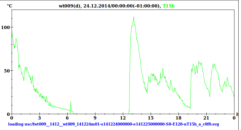 Aus dem Abgas gewonnene Wärmeleistung am 24.12.2014 100=10kW